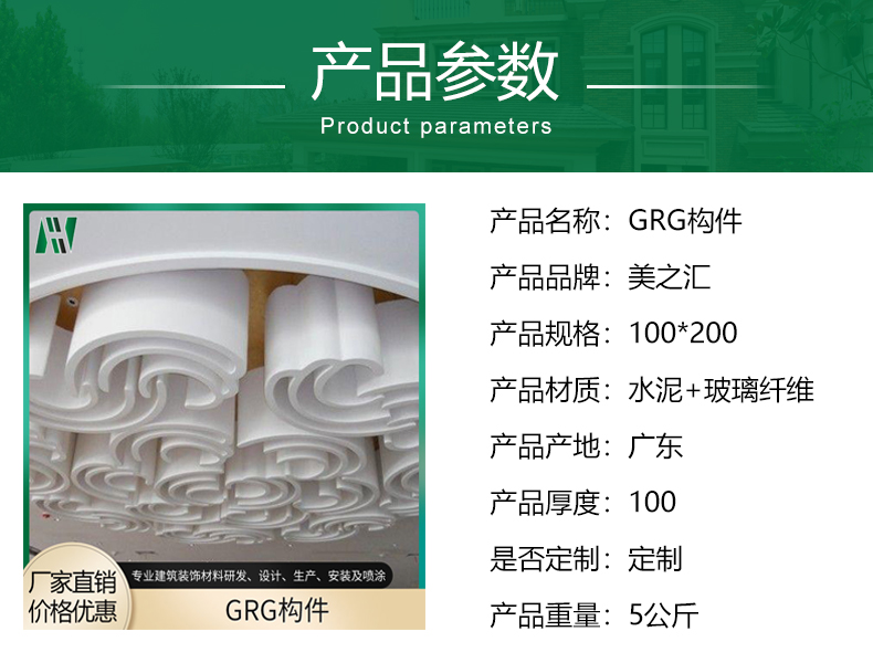 惠州市美之汇新材料制品有限公司是专业从事GRC构件、EPS构件建筑装饰材料研发、设计、生产、安装及喷涂一条龙服务的综合性企业。